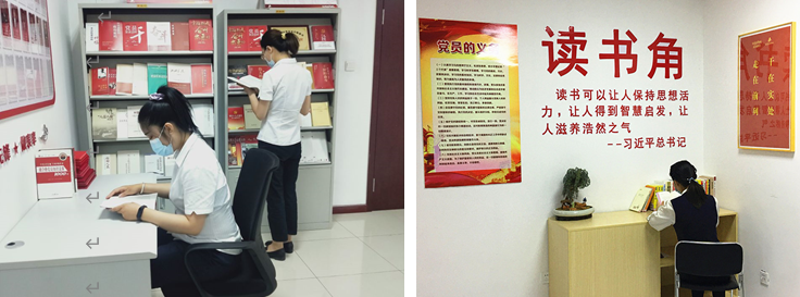 部分黨支部根據(jù)自身情況,增設“黨員、職工學習桌”、“讀書角”讓廣大黨員同志在工作之余從書中汲取營養(yǎng),開闊視野,提升黨性修養(yǎng)。