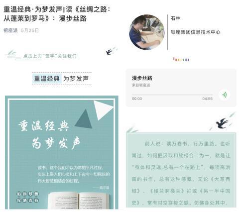 我們充分發(fā)揮“銀座派”微信公眾號受眾廣的特點,特別推出了“重溫經(jīng)典·為夢發(fā)聲”專欄,編發(fā)由員工自創(chuàng)自播的優(yōu)秀作品,深受員工喜歡。