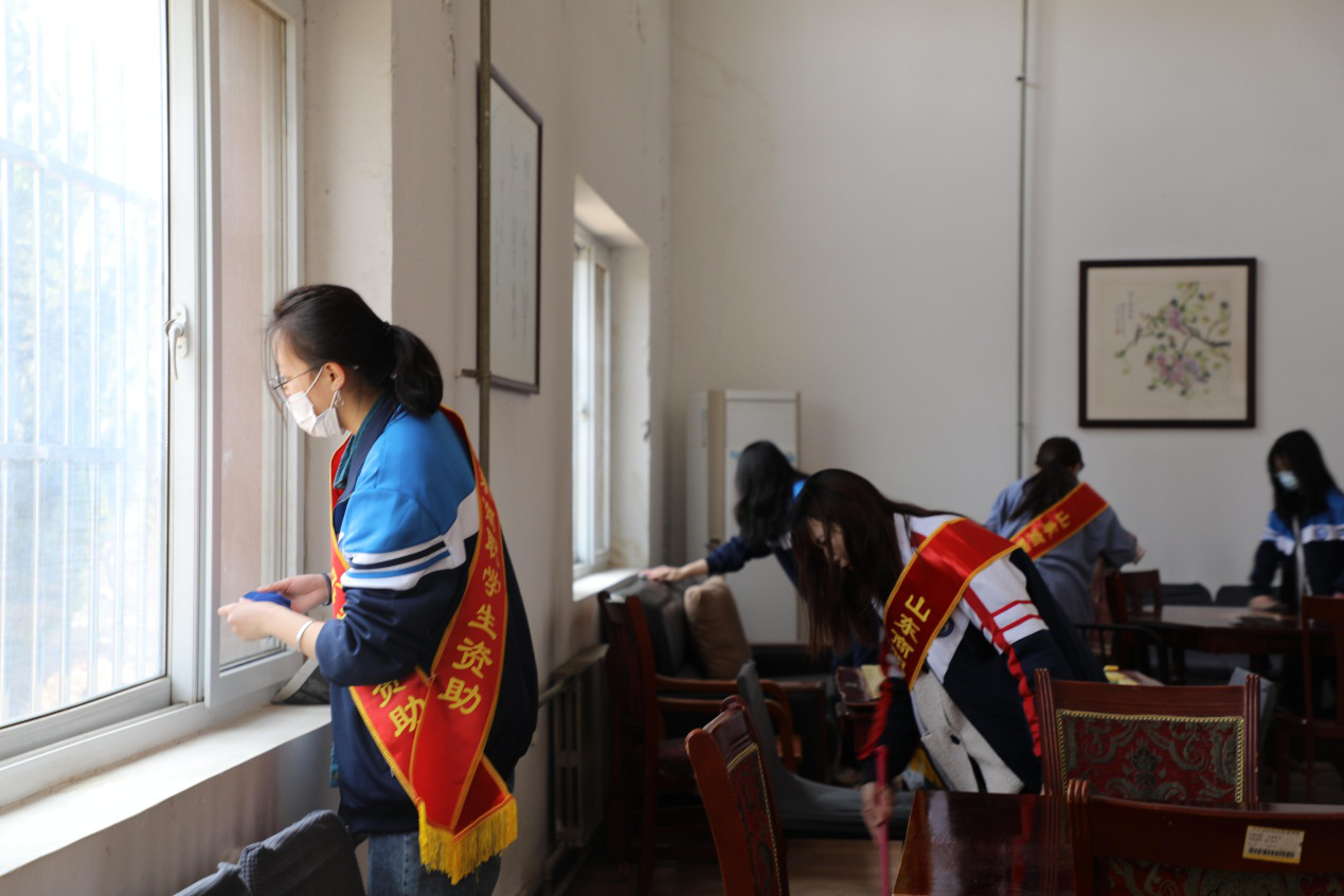 3月4日,受助學(xué)生志愿者們對(duì)學(xué)校老干部活動(dòng)室進(jìn)行了大掃除,為學(xué)校名人雕塑進(jìn)行清潔。大家分工明確,精神飽滿,干勁十足。