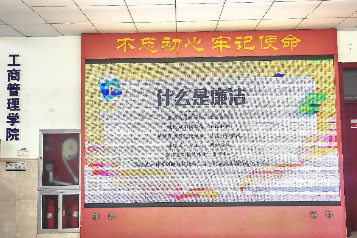 5月5日至10日,學院通過LED屏展播、主題班會及文化墻設計等方式,在學生群體中宣傳廉潔養成、學風家風、校園文明、誠信教育等內容,積極宣揚校園正能量,幫助青年學生增強自律意識,進一步規范自身言行,扎實學習,拼搏向上。