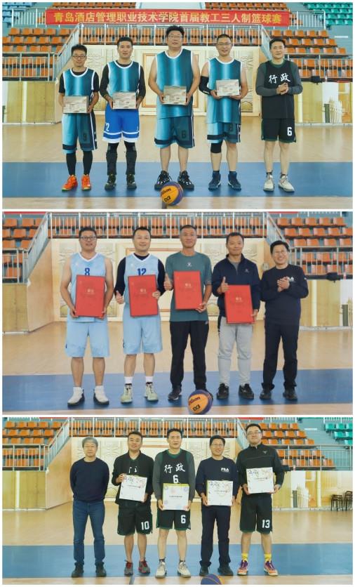 11月6日,青島酒店管理職院首屆教職工三人籃球比賽在體育館落下帷幕。校長姜玉鵬,副校長張宗國、宮恩龍參加閉幕式并為獲獎隊伍頒獎。