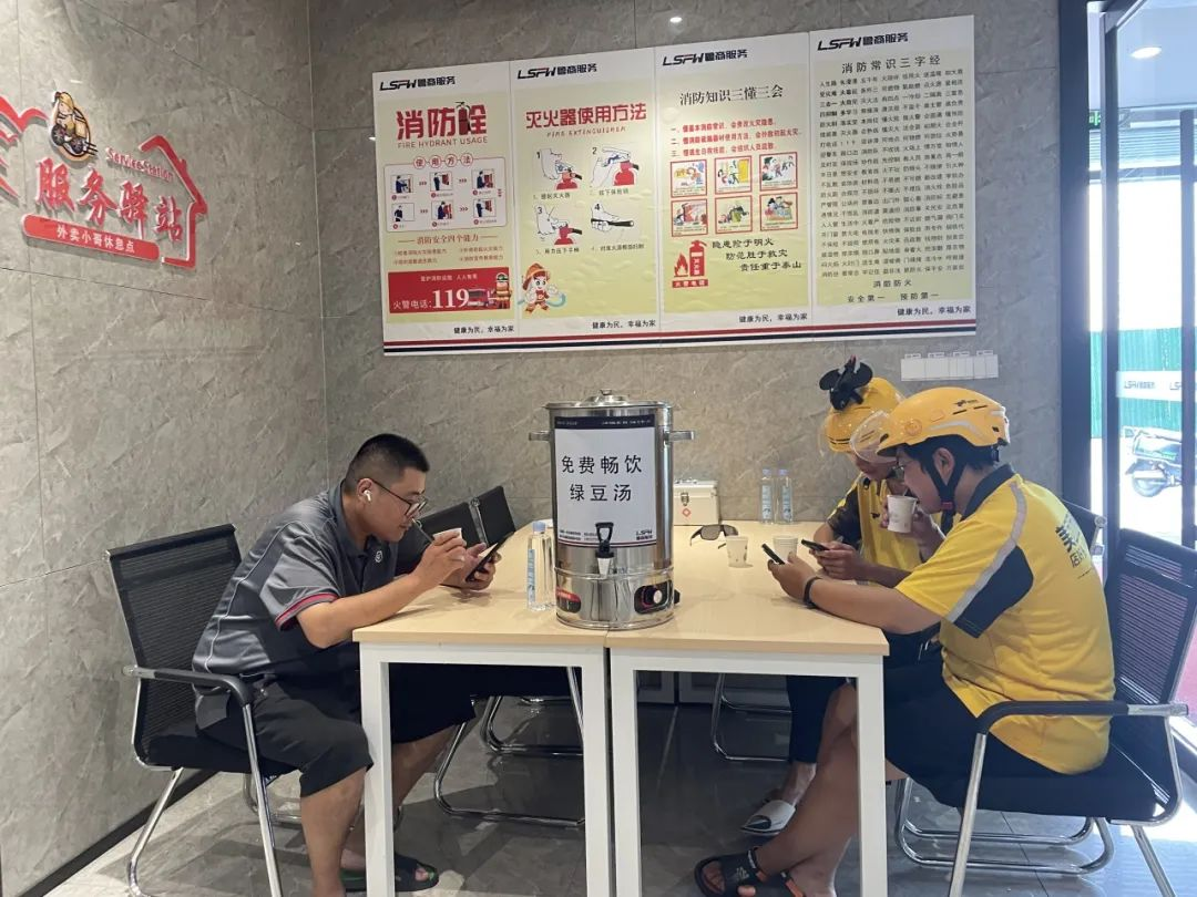 “以往累了只能在樹蔭下乘涼,現(xiàn)在有了這個服務(wù)驛站,不僅能吹空調(diào)、喝綠豆湯,更重要的是能安心地坐下來休息休息,心里特別溫暖。”