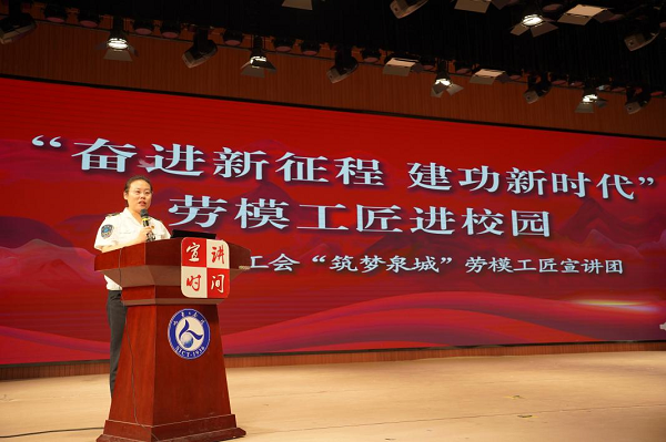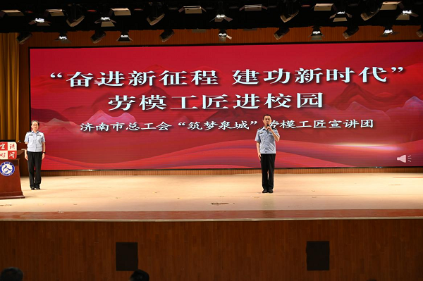 本次活動(dòng)邀請(qǐng)了濟(jì)南市總工會(huì)“筑夢(mèng)泉城”勞模工匠事跡宣講團(tuán)的7位勞模代表?yè)?dān)任主題宣講者,學(xué)校新入職教師、2023級(jí)部分學(xué)生近900人參加了此次宣講活動(dòng)。