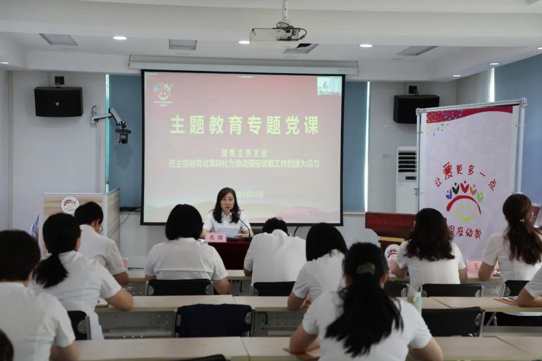 為扎實開展學習貫徹習近平新時代中國特色社會主義思想主題教育,6月25日,銀座幼教黨委書記、董事長袁霞以《聚焦主責主業 把主題教育成果轉化為推動銀座幼教工作的強大動力》為題,為全體黨員講授主題教育專題黨課。