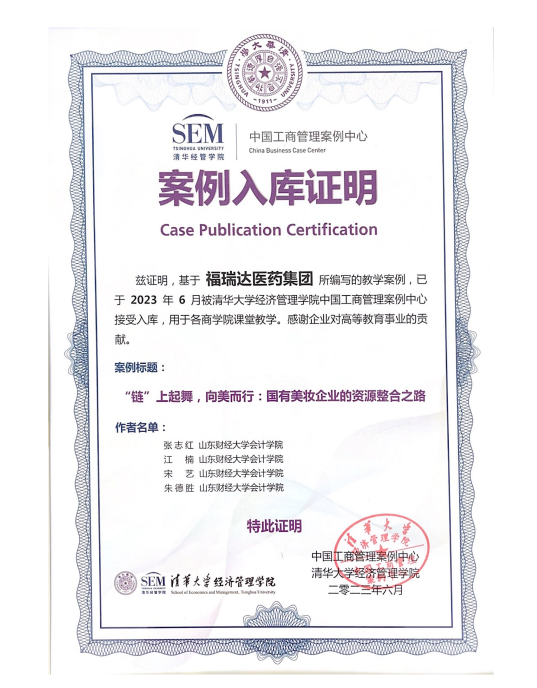 近日,福瑞達(dá)聯(lián)合山東財(cái)經(jīng)大學(xué)以福瑞達(dá)美妝板塊價(jià)值創(chuàng)造模式為研究對(duì)象編制的《“鏈”上起舞,向美而行:國(guó)有美妝企業(yè)的資源整合之路》企業(yè)案例被正式收錄于清華大學(xué)經(jīng)濟(jì)管理學(xué)院中國(guó)工商管理案例庫(kù)。