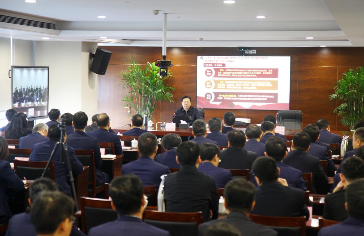張斌指出,要充分認識堅持和完善中國特色社會主義制度、推進國家治理體系和治理能力現(xiàn)代化的重大意義。這是實現(xiàn)“兩個一百年”奮斗目標的重大任務,是把新時代改革開放推向前進的根本要求,是應對風險挑戰(zhàn)、贏得主動的有力保證。要深刻領會中國特色社會主義制度和國家治理體系的顯著優(yōu)勢,堅定中國特色社會主義制度自信。中國特色社會主義制度和國家治理體系具有深厚的歷史底蘊,具有多方面的顯著優(yōu)勢,具有豐富的實踐成果,創(chuàng)造了經(jīng)濟快速發(fā)展和社會長期穩(wěn)定兩個奇跡。要準確把握堅持和完善中國特色社會主義制度、推進國家治理體系和治理能力現(xiàn)代化的總體要求、總體目標和重點任務。要加強黨的領導,確保全會確定的各項目標任務全面落實到位。