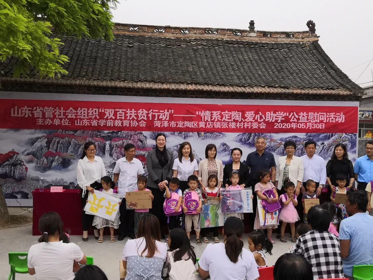 捐贈儀式上,菏澤市關心下一代委員會副主任呂向化,省學前教育協會秘書長喬稱心,監事張傳法,副秘書長李婷、郭秋霞,定陶區人大常委會副主任王鳳娟,黃店鎮黨委副書記、鎮長李銘,張樓村省派第一書記殷學軍等出席活動。殷學軍表達了對蒞臨嘉賓的感謝,喬稱心為孩子們送上節日慰問和祝福。