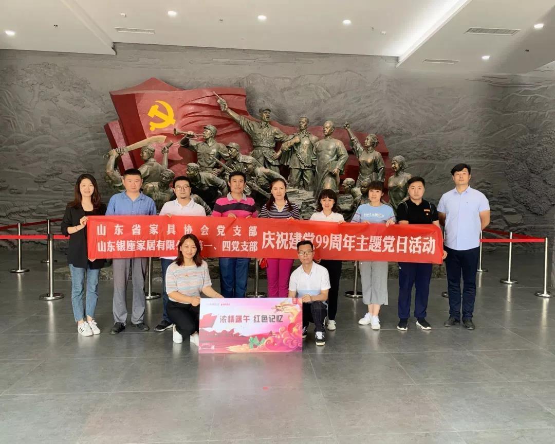 6月24日,恰逢端午佳節即將來臨之際,為弘揚中華民族傳統文化,加深黨員紅色記憶,銀座家居與山東省家具協會聯合開展“濃情端午,紅色記憶”慶祝建黨99周年主題黨日活動,共赴濟南大峰山黨性教育基地參觀學習,追憶紅色基因,傳承革命精神。