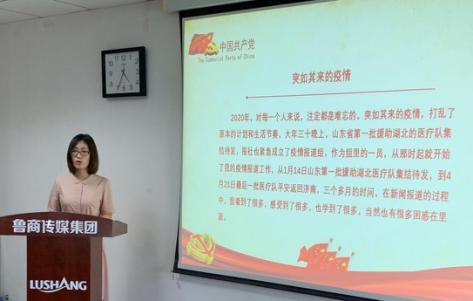 7月1日,正值中國共產黨建黨99周年之際,為進一步增強黨員先鋒意識,激發黨組織戰斗活力,魯商傳媒黨委開展“我來講黨課”活動。本次活動邀請山東戰“疫”最美新聞工作者、山東商報記者劉慶英,為黨員干部講黨課《記著,學著》。魯商傳媒黨委書記、董事長孫超,黨委副書記、總經理、總編輯龐道鋒出席活動。