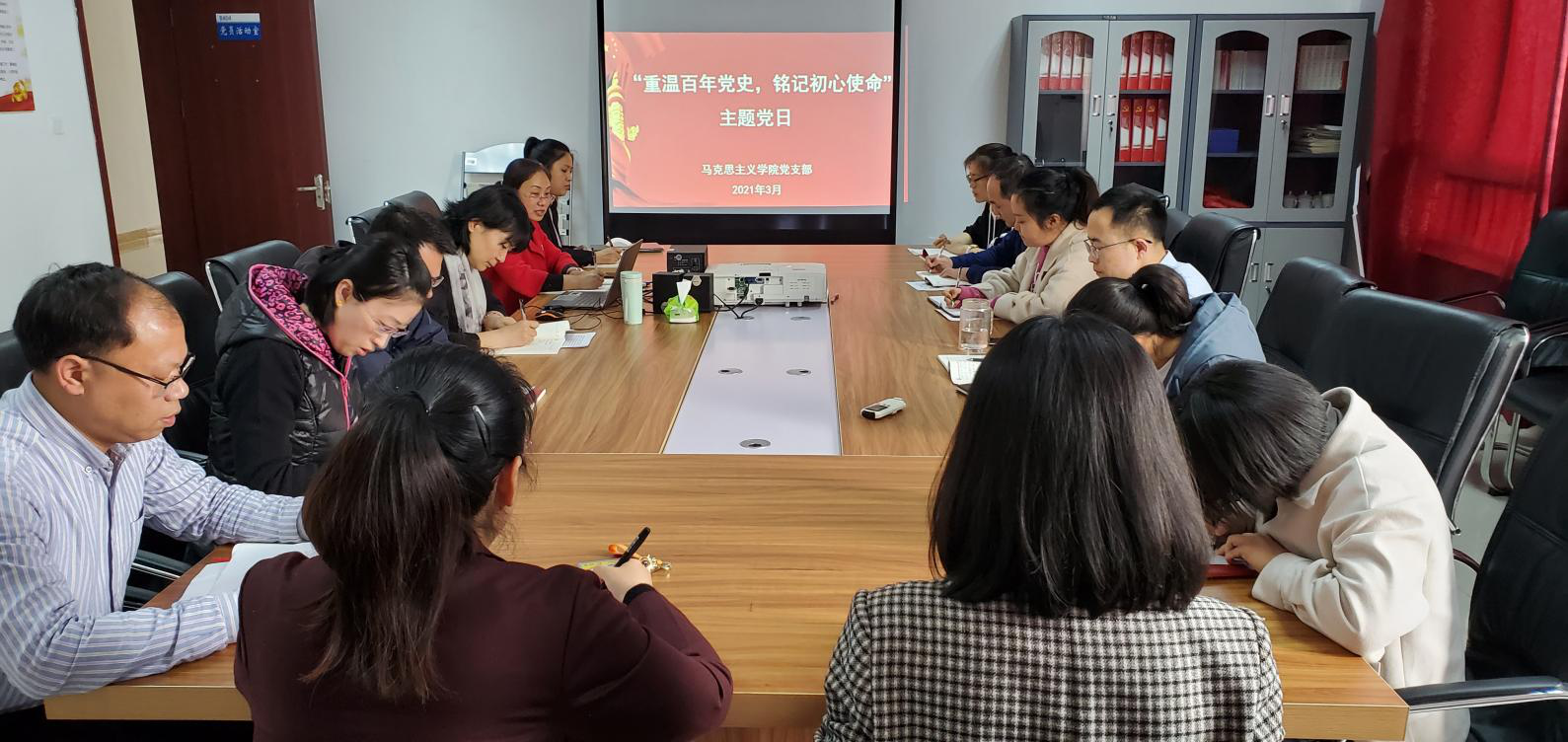支部全體黨員集體學習了學院黨委《關于在全院開展黨史學習教育的實施方案》的通知。馬克思主義學院全體黨員教師表示要在學黨史、講黨史、懂黨史、用黨史方面要發揮示范帶動作用,以中國共產黨成立100周年為契機,在教學、科研等工作中大力宣傳黨的光輝歷程和豐功偉績,深入研究中國共產黨為什么能、馬克思主義為什么行、中國特色社會主義為什么好,產出一批優秀成果,以實際行動向中國共產黨成立100周年獻禮!