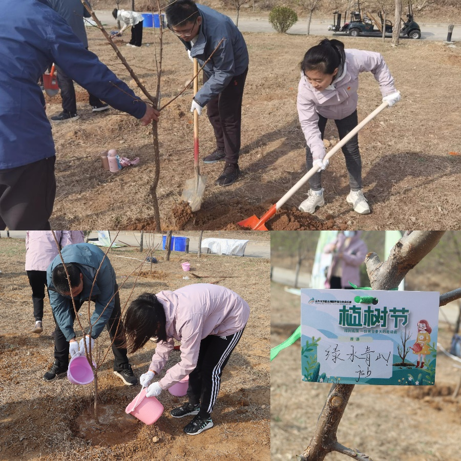 在義務植樹活動中,全體黨員兩三個人一組,鏟土、定植、栽種、澆水,大家分工明確、配合默契,合力栽下一棵棵杏樹,為濟南的春天增添綠色和生機。