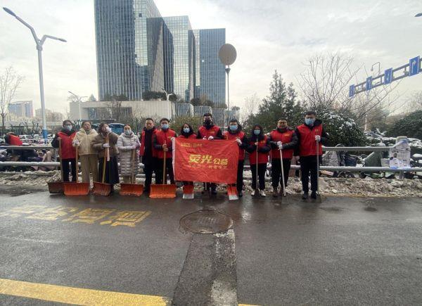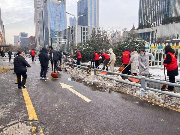 活動中,黨員志愿者們手持工具、不畏嚴寒,分工明確、配合默契,在國奧城園區(qū)開展除冰掃雪,為園區(qū)內(nèi)群眾的安全出行和交通暢通保駕護航。在大家的共同奮戰(zhàn)下,園區(qū)積雪積冰得到有效清除。
