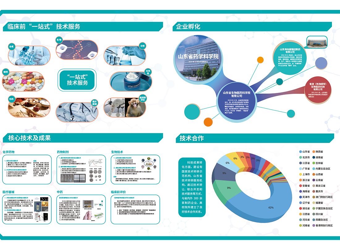 山東省藥學科學院隸屬魯商集團,省屬公益二類科研院所。以生物藥物、化學藥物、糖藥物及天然藥物為主要特色,提供藥物、醫療器械、化妝品、保健食品等大健康產品臨床前研發一站式技術服務,綜合實力位居全國省級新藥研究科研院所前列。