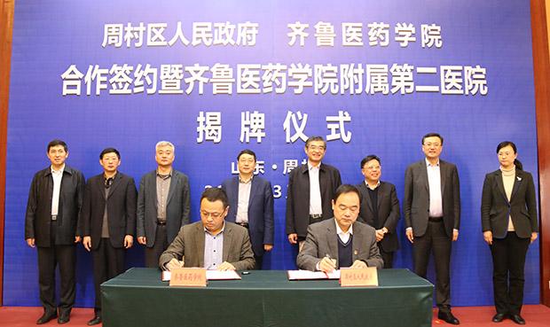 3月19日,齊魯醫藥學院與淄博市周村區政府合作簽約暨齊魯醫藥學院附屬第二醫院揭牌儀式在周村賓館舉行,淄博市副市長蓋衛星與山東省商業集團有限公司(以下簡稱魯商集團)黨委副書記、總經理凌沛學為齊魯醫藥學院附屬第二醫院揭牌,周村區委書記沙向東等領導致辭,周村區委副書記、區長劉偉與魯商集團黨委副書記、齊魯醫藥學院董事長劉守亮簽署合作協議。此舉掀開了周村區校城合作的新篇章。