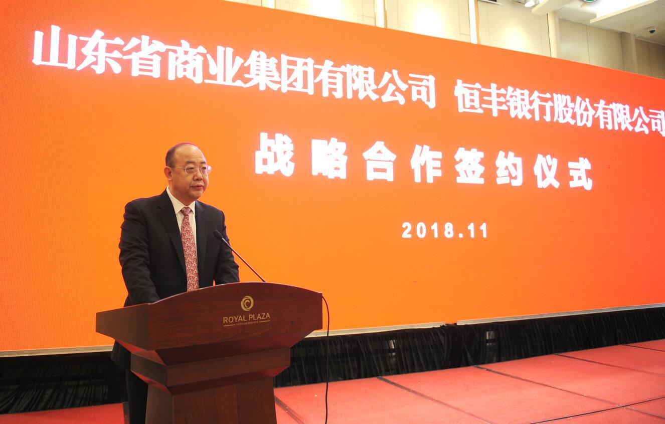 高洪雷對恒豐銀行多年來支持魯商集團發(fā)展表示感謝。他說,魯商集團是1992年底由省商業(yè)廳整建制改建而成的國有企業(yè),現(xiàn)已成長為以智慧零售業(yè)、文化旅游業(yè)、綜合地產(chǎn)業(yè)、醫(yī)藥康養(yǎng)業(yè)、現(xiàn)代金融業(yè)為主業(yè)的多元化企業(yè)。集團現(xiàn)擁有兩家上市公司、四所高校、三個全國馳名商標、六個國家級研發(fā)平臺、304戶企業(yè),從業(yè)員工20萬人。2018年前三季度,集團實現(xiàn)營業(yè)收入同比增長6.67%,實現(xiàn)報表利潤同比增長30.75%。