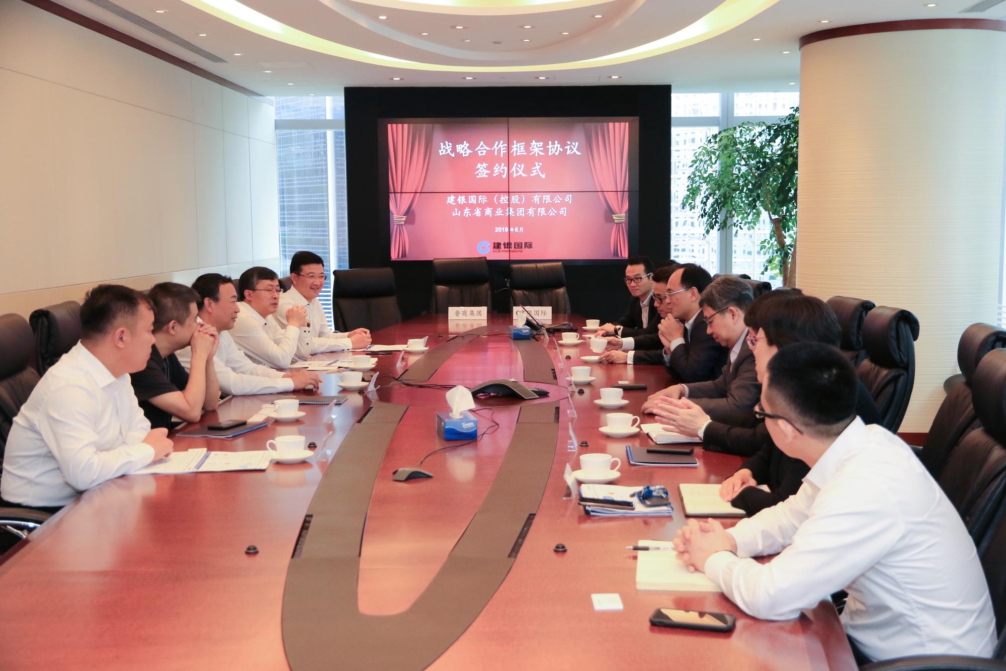 6月4日,省商業(yè)集團(tuán)有限公司(以下簡稱魯商集團(tuán))黨委書記、董事長兼省文旅集團(tuán)董事長高洪雷,在香港與建銀國際(控股)有限公司(以下簡稱建銀國際)執(zhí)行董事、副行政總裁劉守建舉行會談,并共同見證魯商集團(tuán)與建銀國際戰(zhàn)略合作框架協(xié)議簽約。