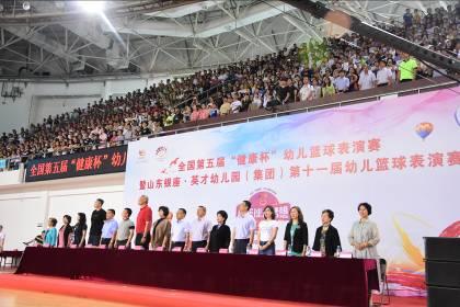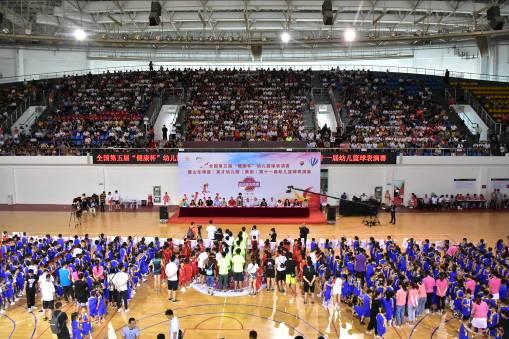6月16日上午8:00,由中國(guó)民辦教育協(xié)會(huì)學(xué)前教育專業(yè)委員會(huì)主辦,山東銀座·英才幼兒園(集團(tuán))(以下簡(jiǎn)稱銀座幼教)、北京銀座教育集團(tuán)承辦,山東省籃球運(yùn)動(dòng)協(xié)會(huì)(以下簡(jiǎn)稱省籃協(xié))特別指導(dǎo)的全國(guó)第五屆“健康杯”幼兒籃球表演賽暨銀座幼教第十一屆幼兒籃球表演賽于濟(jì)南市歷城區(qū)體育中心拉開(kāi)帷幕。來(lái)自全國(guó)七省市58支代表隊(duì)的近1200名幼兒齊聚泉城,參加了本次幼兒籃球盛事。