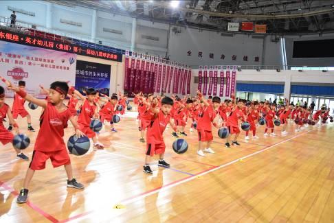 隨后,劉秀華宣布比賽正式開(kāi)始。銀座幼教濟(jì)南片區(qū)百名幼兒以一場(chǎng)大型籃球操表演吹響比賽號(hào)角。