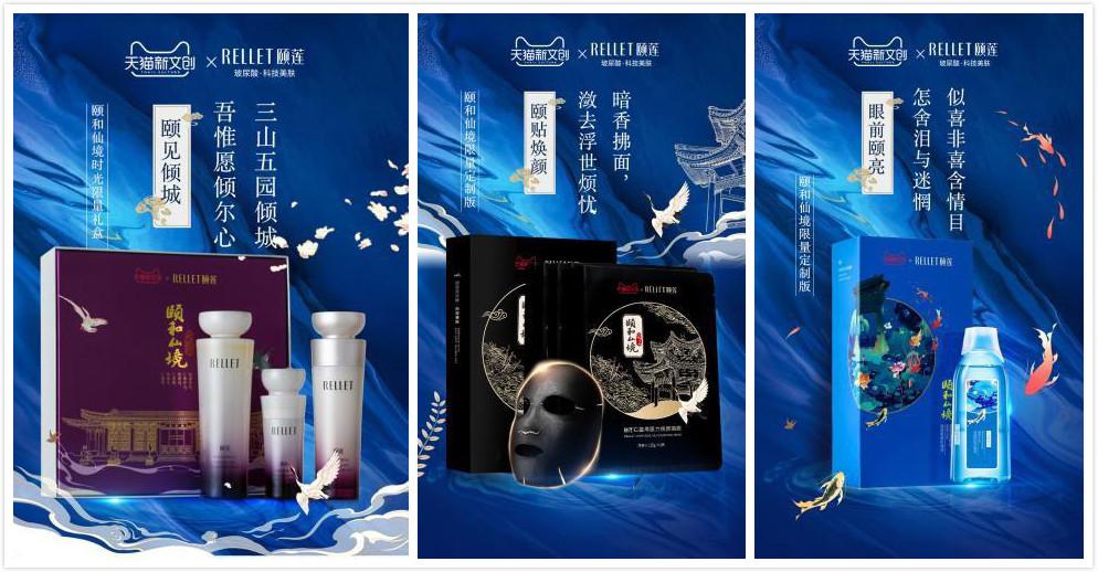 作為頤和園文創的優秀代表之一,福瑞達美業旗下主打科技美膚的玻尿酸品牌頤蓮,和立白、顧家等眾多中國優秀品牌一起亮相展覽。展出的“頤和仙境”系列產品,巧妙融合頤和園風物、渲染國風意蘊,將如夢如幻的頤和園美景與行業頂級玻尿酸護膚應用科技完美結合,賦予傳統文化以新的活力。產品主題插畫均取自于頤和園長廊等古代園林,以充滿古典韻味的玄色、靛藍等作為底色,又以金色線條為主勾勒出亭臺水榭,與本次數字光影藝術展相得益彰、交相輝映。別具一格的設計,也使得“頤和仙境”成為最具特色的參展品牌之一。