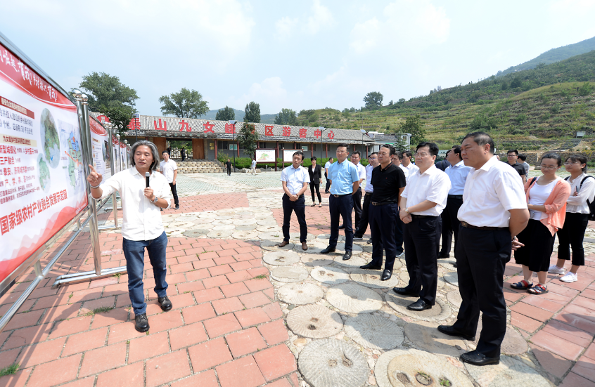 9月5日,省國資委在泰安組織召開穩增長促發展重點項目建設調度會。期間,省國資委黨委書記、主任張斌帶隊現場觀摩由省商業集團有限公司(以下簡稱魯商集團)打造的九女峰鄉村振興項目,并給予充分肯定。魯商集團黨委書記、董事長兼省文旅集團董事長高洪雷,泰安市委副書記、市長張濤,泰安市委常委、常務副市長展寶衛,省國資委二級巡視員王緒超,泰安市政府秘書長張韌出席活動。