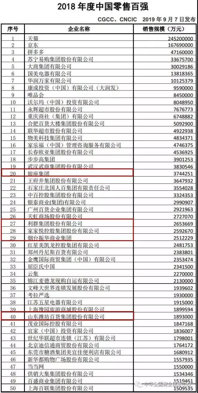9月7日,在重慶舉辦的第十九屆亞太零售商大會暨國際消費品博覽會上,中國商業(yè)聯合會、中華全國商業(yè)信息中心發(fā)布2018年度中國零售百強名單,銀座集團以超370億元的銷售規(guī)模位列全國二十、山東首位。