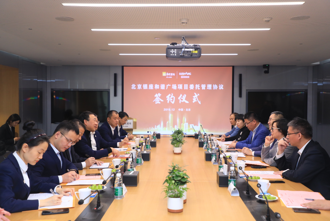現(xiàn)場,在高洪雷、張大為、張建軍、魏小華見證下,雙方簽署北京銀座和諧廣場項目委托管理協(xié)議。