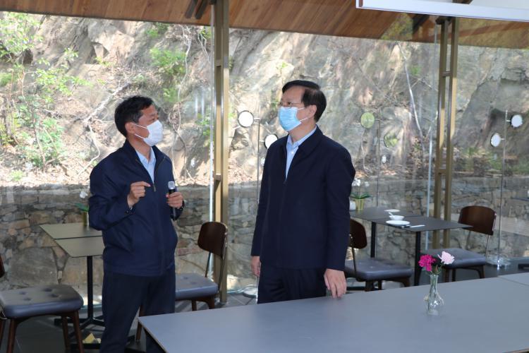 4月15日,省市場(chǎng)監(jiān)管局黨組書記、局長(zhǎng)侯成君一行到魯商九女峰鄉(xiāng)村旅游度假區(qū)調(diào)研,泰安市副市長(zhǎng)袁久黨,岱岳區(qū)委書記劉昌松,區(qū)委常委、區(qū)委辦公室主任劉燦玉,副區(qū)長(zhǎng)、區(qū)財(cái)政局局長(zhǎng)錢振華陪同。岱岳區(qū)道朗鎮(zhèn)、魯商九女峰鄉(xiāng)村振興有限公司相關(guān)負(fù)責(zé)人陪同。(王玉龍)