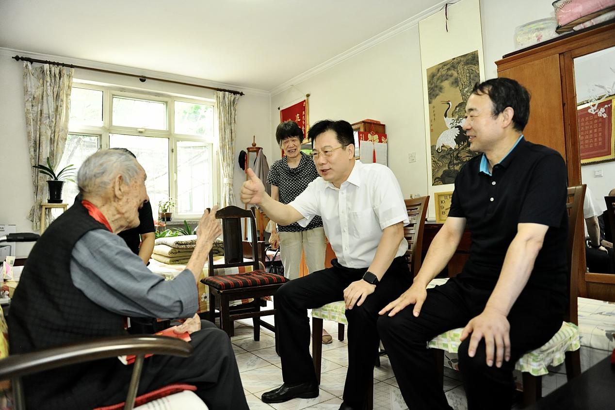 6月24日,在慶祝中國共產黨成立100周年之際,省國資委黨委書記、主任張斌,魯商集團黨委書記、董事長兼國欣文旅董事長高洪雷,來到濟南市歷下區青后小區,走訪慰問魯商集團老黨員單盛甫老人。黨委常委、董事、組織人力資源部部長李林陪同。