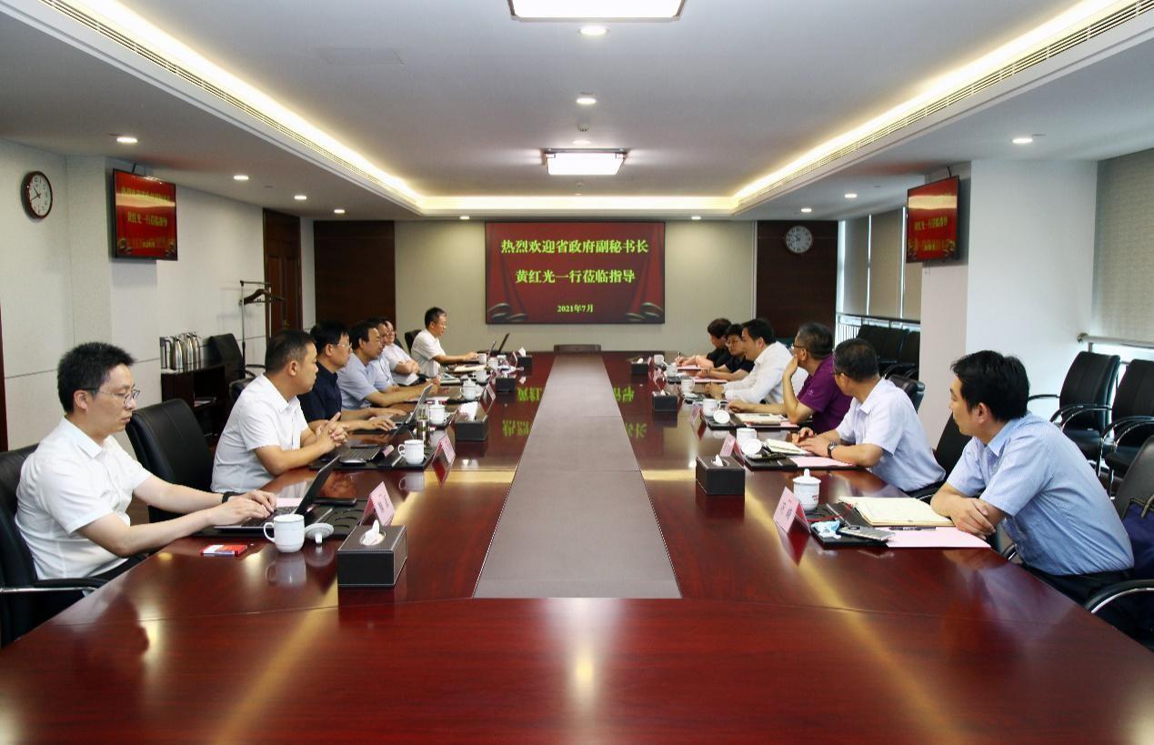7月28日,省政府副秘書長、辦公廳黨組成員、機關黨委書記黃紅光一行到魯商集團調研指導工作。魯商集團黨委書記、董事長兼國欣文旅董事長高洪雷,省政府辦公廳機關黨委專職副書記、二級巡視員蘇勛團,魯商集團黨委副書記、董事劉守亮,黨委常委、董事、組織人力資源部部長李林,黨委常委、總審計師、工會主席劉德華出席活動。
