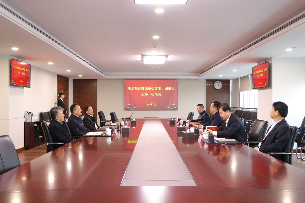 4月24日,聊城市委常委、副市長王峰到訪魯商集團,集團黨委書記、董事長王緒超熱情接待并舉行座談,黨委副書記、董事、副總經理朱華建出席活動。