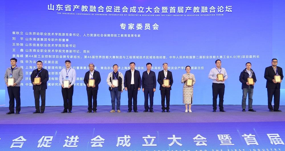 會上顧曉松、陳善廣、趙俊強、孫來斌與省委教育工委委員、省教育廳黨組成員、副廳長仲紅波、國家發展改革委社會發展司人力資源開發處處長、一級調研員翟建民、王緒超共同為山東省產教融合促進會揭牌。大會為會長、副會長單位、專家委員會成員、監事授牌,魯商集團作為會長單位上臺受牌。集團黨委副書記、董事、副總經理、山東省產教融合促進會會長朱華建代表會長單位發言。集團黨委常委、董事、組織人力資源部部長、山東省產教融合促進會執行會長李林為專家委員會成員授牌?,F場發布了產教融合典型案例,魯商集團《國企引領促發展 產教融合譜新篇》案例成功入選。