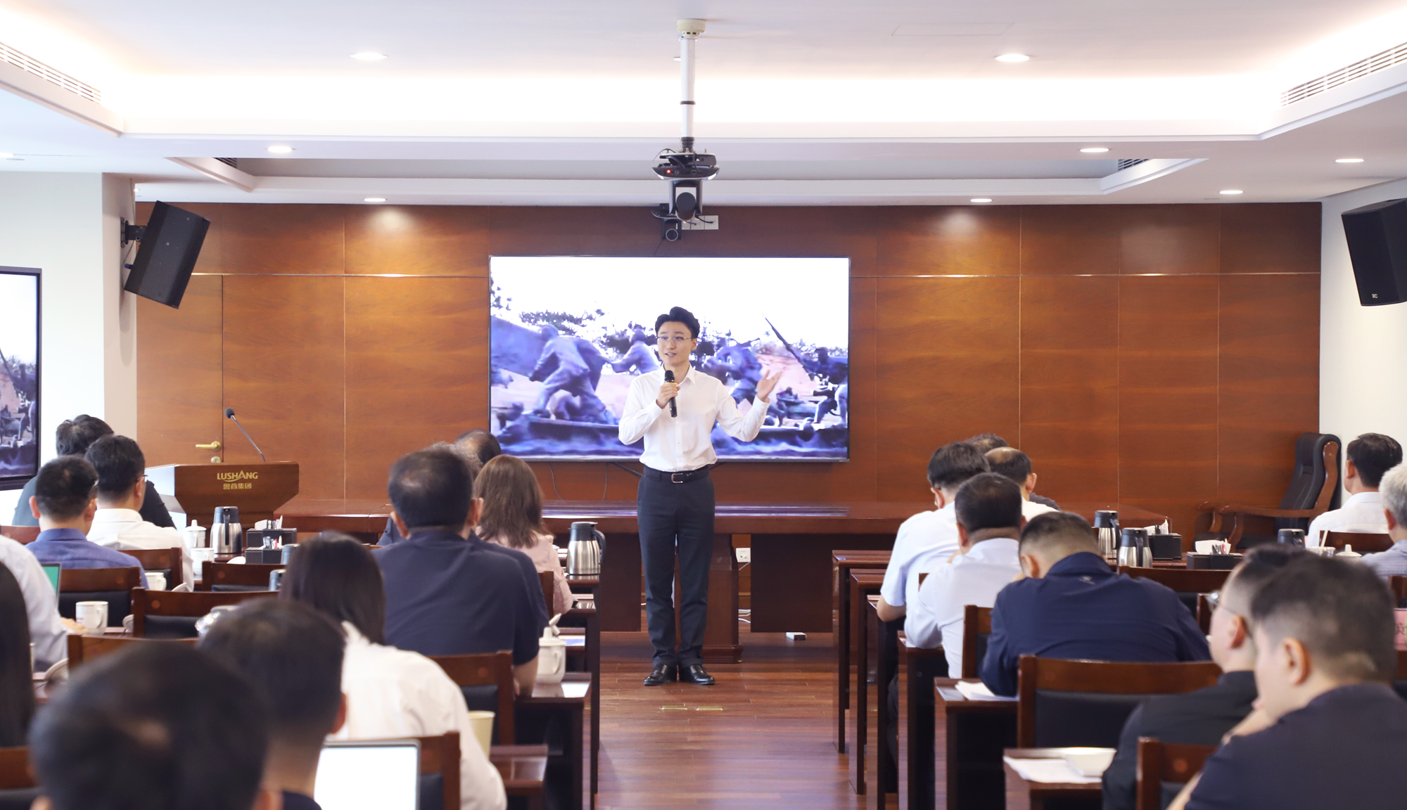 9月28日,魯商集團舉行“沂蒙精神代代傳”主題宣講暨集團黨委理論學習中心組(擴大)2025年第9次集體學習會,省委黨史研究院(省地方史志研究院)原一級巡視員、省委“沂蒙精神代代傳”宣講團專家韓延明作示范宣講。集團黨委常委、董事會成員、經理層,安全總監,總部全體人員,各直管單位中層及以上人員參會。