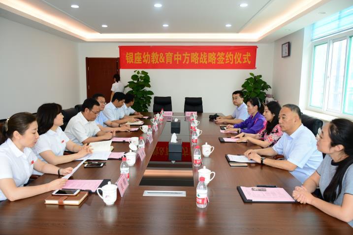 7月6日上午,山東銀座?英才幼兒園(集團)與山東育中方略教育集團戰略簽約儀式于銀座幼教總部會議室隆重舉行,雙方就未來各領域深度合作達成戰略性合作意見。