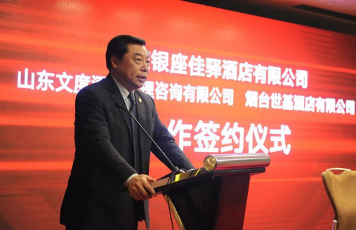 省旅游飯店協(xié)會會長何莊龍,魯商集團(tuán)副總經(jīng)理、省文旅集團(tuán)黨委專職副書記趙西亮,省文旅集團(tuán)副總經(jīng)理、銀座旅游集團(tuán)黨委書記、董事長鄭良玉,銀座旅游集團(tuán)總經(jīng)理殷春陽,山東文度董事長陳東輝,煙臺世基董事長郝大鵬,佳驛公司總經(jīng)理王韜出席儀式。