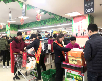 奉獻擔當堅守一線。春節期間,銀座集團一線廣大黨員干部員工,放棄回家與親人團聚的機會,堅守崗位,確保了節日期間門店正常運營。春節客流較大,各門店二線人員主動幫扶一線,黨員、青年先鋒隊發揮模范帶頭作用,主動到款臺幫忙裝袋、輔助收銀、整理回收、指引方位等,真正做到哪里繁忙、任務重,哪里就有黨員志愿服務隊的身影。同時,各門店還在節假日提供增值服務,有的成立送貨小分隊,員工主動請纓為顧客提供送貨服務,受到顧客一致好評。