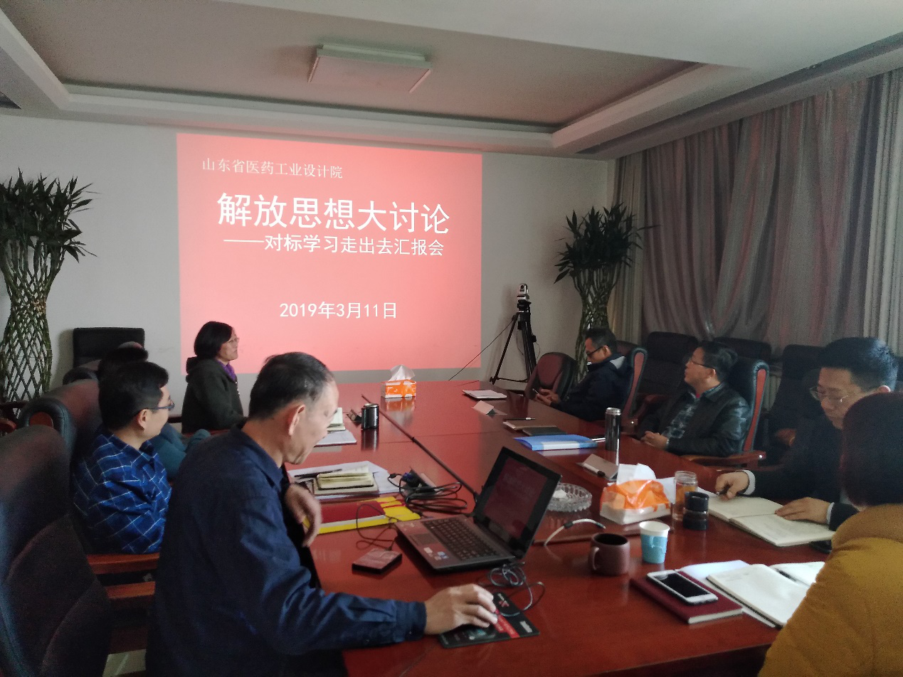 3月11日,省醫藥工業設計院舉行“解放思想大討論——對標學習走出去匯報會”,就此次對標學習的內容和收獲進行了交流和梳理,并發起“頭腦風暴”,讓大家談體會、談感想,對省醫藥工業設計院的發展獻計獻策。與會人員一致認為,對標企業在設計院管理方面有著較豐富的經驗和先進的做法,對提升省醫藥工業設計院管理品質大有裨益。省醫藥工業設計院將積極結合自身實際,認真總結,深入研究,取長補短,積極探索下一步發展的新思路、新方法。