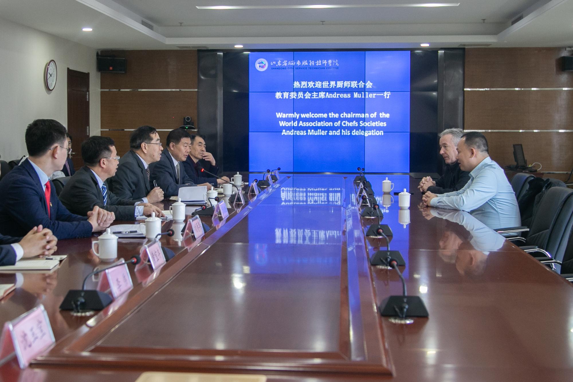 近日,世界廚師聯(lián)合會教育委員會主席安德烈亞斯.穆勒、中國西餐大師朱一帆一行到訪城市學院。學院黨委書記宋寧、黨委副書記鄒世斌、副院長劉培勝接待。