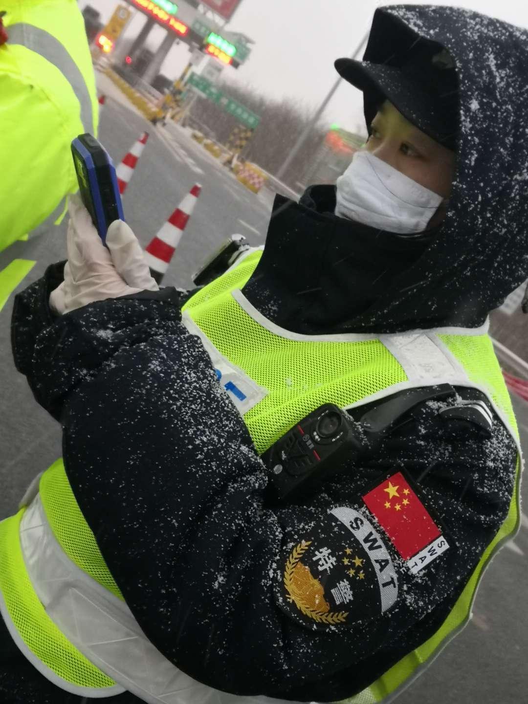 李曉美所在的團(tuán)隊(duì)共15人,在戰(zhàn)“疫”一線上,他們24小時(shí)輪班在德濱高速寧津點(diǎn)檢查過往車輛和行人。人手不夠時(shí),李曉美一天要值崗12個(gè)小時(shí)。適逢寒冬時(shí)節(jié),白天還好些,晚上寒風(fēng)刺骨,她常常凍得直打哆嗦。春節(jié)前后又逢雨雪天氣,大雪飄灑在身上又濕又冷。每次手凍僵了,就哈哈熱氣;棉鞋凍透了,就跺跺腳。對(duì)來往車輛和行人的證件,他們按照“不漏一人,不漏一車”的要求,嚴(yán)格落實(shí)人車登記制度。平均每天核查車輛600多輛,人員1000余人。