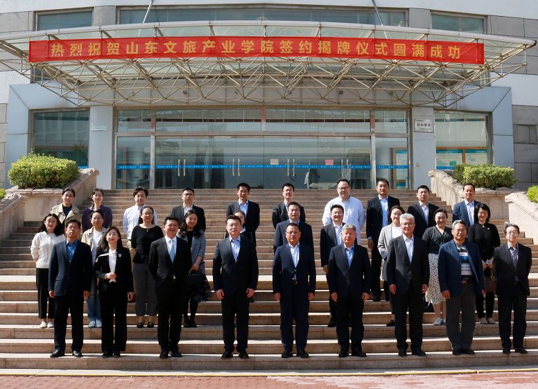 隨后,李浩與宮恩龍就共建山東文旅產(chǎn)業(yè)學(xué)院進(jìn)行簽約。劉守亮、李達(dá)共同為“山東文旅產(chǎn)業(yè)學(xué)院”“產(chǎn)教融合實(shí)訓(xùn)實(shí)習(xí)基地”揭牌。