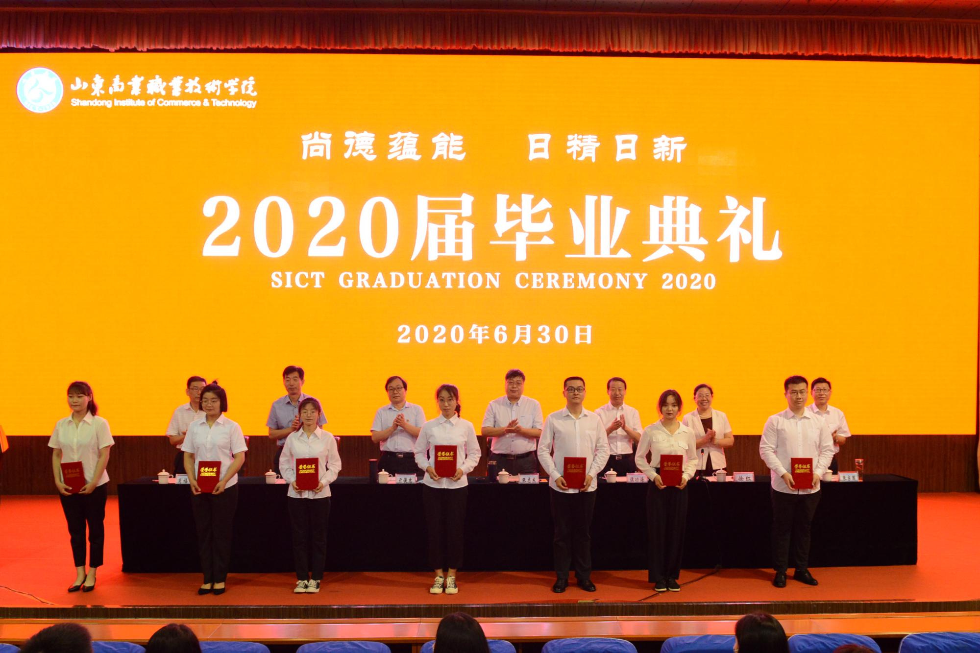 6月30日,山東商院2020屆學生畢業典禮舉行,以線上直播、線下會場相結合的方式歡送畢業生。