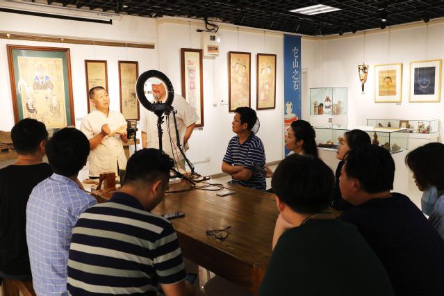 活動(dòng)利用線上直播和線下論壇相結(jié)合形式展開(kāi),青島市民間文藝家協(xié)會(huì)副主席、青島手工藝協(xié)會(huì)會(huì)長(zhǎng)、青島手工藝博物館館長(zhǎng)魯漢科普了端午節(jié)與榼子的關(guān)系和傳承淵源,講述了端午節(jié)的奇聞趣事、“五毒餅”食俗的淵源以及榼子的制作工藝。青島餑餑榼子非遺傳承人、青島市工藝美術(shù)大師王丕文現(xiàn)場(chǎng)操刀,從選材、加工和雕刻等流程上,為大眾演示了榼子的制作方法。