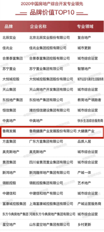 9月10日,“2020中國(guó)房地產(chǎn)品牌價(jià)值研究成果發(fā)布會(huì)暨第十七屆中國(guó)房地產(chǎn)品牌發(fā)展高峰論壇”在北京召開,會(huì)上隆重發(fā)布了《2020中國(guó)房地產(chǎn)品牌價(jià)值研究報(bào)告》。作為深耕大健康產(chǎn)業(yè)的魯商發(fā)展入圍2020中國(guó)房地產(chǎn)綜合開發(fā)專業(yè)領(lǐng)先品牌價(jià)值TOP10榜單,并同時(shí)榮膺2020中國(guó)山東半島城市群行業(yè)品牌價(jià)值TOP10榜單第二位。