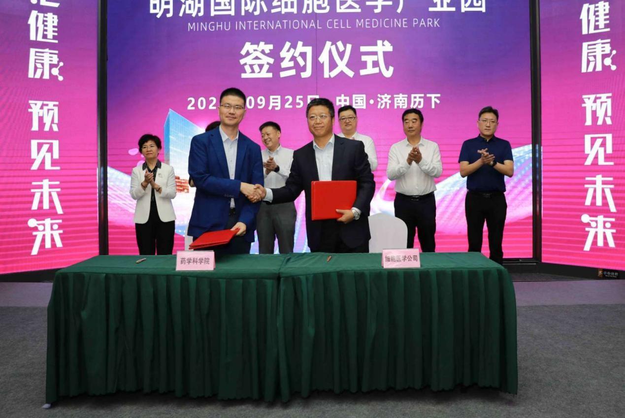 9月25日,明湖國際細(xì)胞醫(yī)學(xué)產(chǎn)業(yè)園(以下簡稱“細(xì)胞產(chǎn)業(yè)園”)簽約儀式在中央商務(wù)區(qū)文化服務(wù)中心舉行。自貿(mào)試驗(yàn)區(qū)濟(jì)南片區(qū)管委會常務(wù)副主任劉艷秋,市商務(wù)局副局長梁旭斌,市工信局副局長朱牧,市衛(wèi)生健康委員會副主任楊玉華,歷下區(qū)區(qū)委書記江山等出席簽約儀式。省藥科院副院長劉飛作為嘉賓受邀出席簽約儀式并同細(xì)胞醫(yī)學(xué)公司簽署戰(zhàn)略合作協(xié)議。