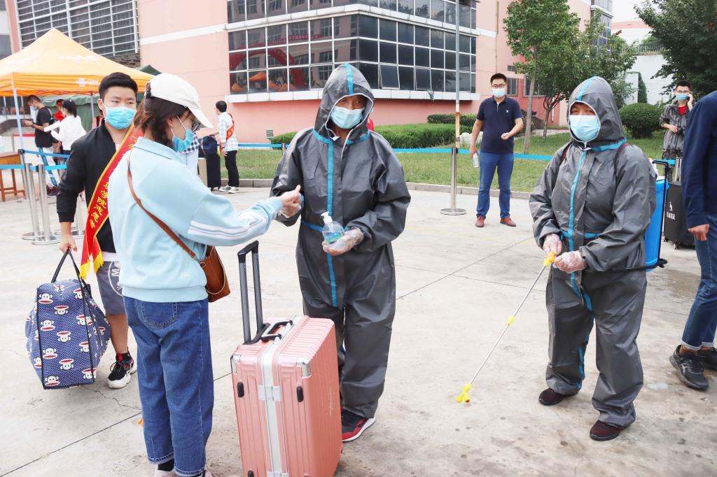鮮艷的拱門、暖心的橫幅、細致的防疫標識,在校園里隨處可見。按照疫情防控常態化要求,同學們依次完成消毒、體溫檢測、身份核驗和綠碼核驗、篩查評估等環節后步入校園,全程由志愿者引導辦理報到、入住等手續。