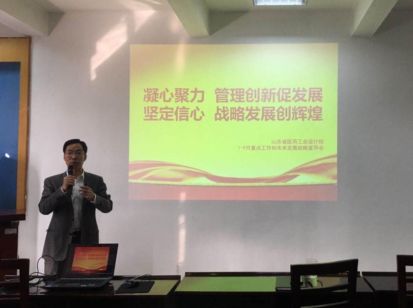 管理創新促發展,戰略發展創輝煌。10月12日上午,省醫藥工業設計院召開1-9月重點工作和發展戰略宣導會,黨總支書記、院長黃曉東主持會議,全院干部職工160余人參加會議。