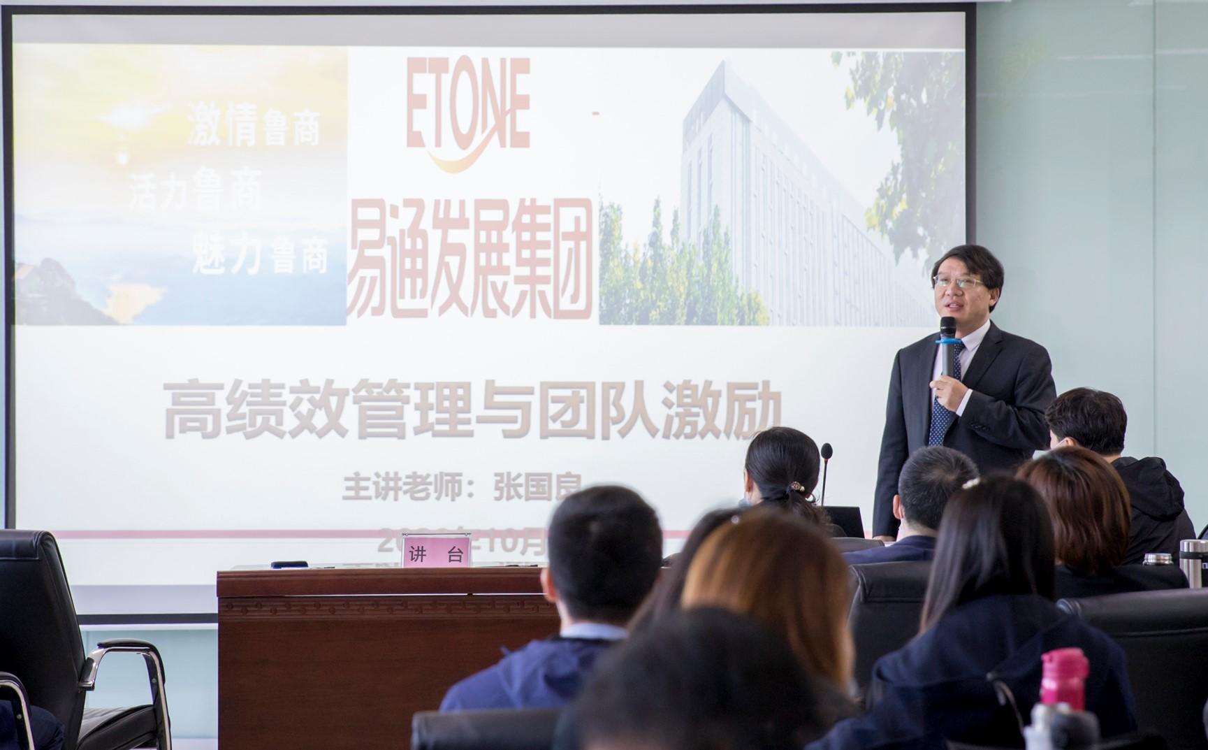 為貫徹落實(shí)集團(tuán)創(chuàng)新工作精神,切實(shí)推動(dòng)干部隊(duì)伍建設(shè)與工作質(zhì)量提升,強(qiáng)化打造學(xué)習(xí)型組織,易通推出“賦能·突破--干部提升”系列培訓(xùn)計(jì)劃,于10月17日成功開班并開展首期培訓(xùn)。本次培訓(xùn)邀請(qǐng)清華大學(xué)職業(yè)經(jīng)理人訓(xùn)練中心特聘講師、北京大學(xué)總裁班特聘講師、第八屆中國(guó)企業(yè)教育百?gòu)?qiáng)人力資源專業(yè)十佳培訓(xùn)師張國(guó)良,圍繞“高績(jī)效管理與團(tuán)隊(duì)激勵(lì)”主題作專題培訓(xùn),公司班子成員、各經(jīng)營(yíng)部位班子與條線負(fù)責(zé)人等60余人參加。