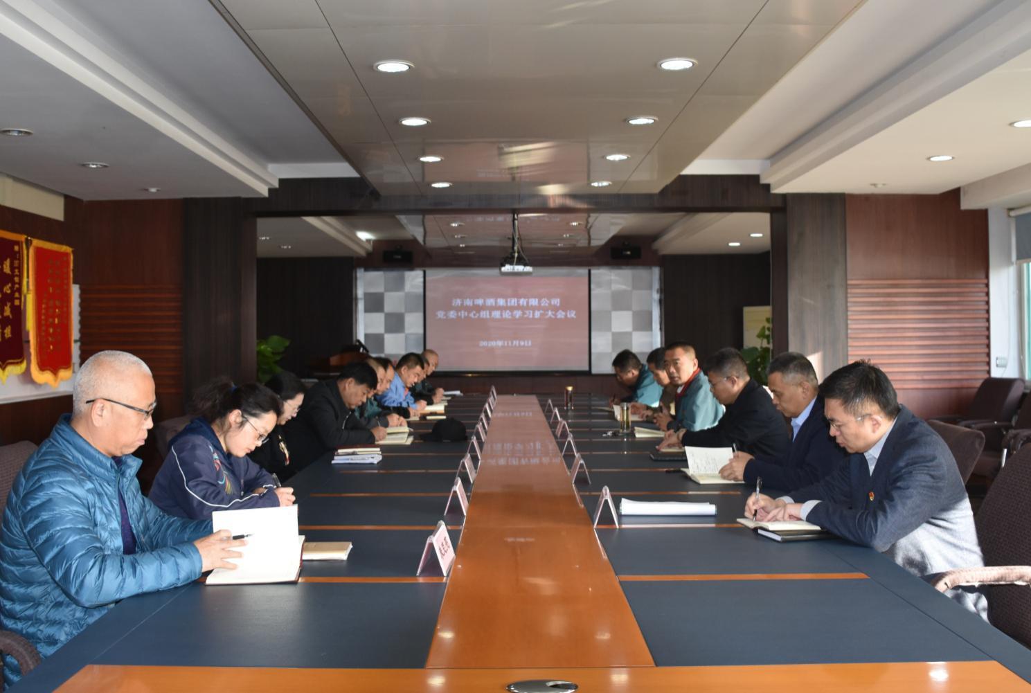 11月9日上午,濟啤集團召開黨委理論學習中心組(擴大)專題會議,學習貫徹黨的十九屆五中全會會議精神,傳達學習集團黨委理論學習中心組(擴大)2020年第12次集體學習會精神。公司黨委書記、董事長周雷主持會議。