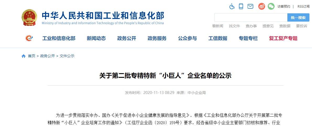 為進一步貫徹落實中辦、國辦《關于促進中小企業(yè)健康發(fā)展的指導意見》,根據(jù)《工業(yè)和信息化部辦公廳關于開展第二批專精特新“小巨人”企業(yè)培育工作的通知》(工信廳企業(yè)函〔2020〕159號)要求,經(jīng)各省級中小企業(yè)主管部門初核和推薦、行業(yè)協(xié)會限定性條件論證、專家審核等流程,近日工信部中小企業(yè)局公布了通過審核的企業(yè)名單。