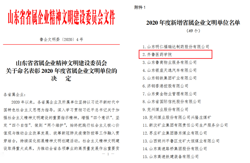 12月3日,從《山東省省屬企業精神文明建設委員會關于命名表彰2020年度省屬企業文明單位的決定》文件獲悉,學院被評為省屬企業文明單位。