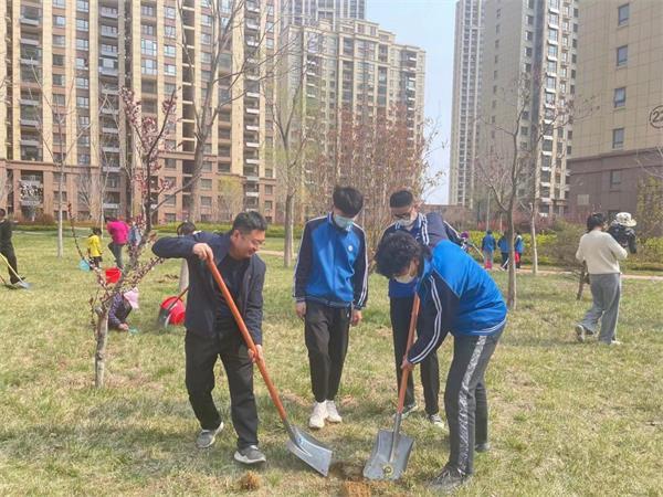 在植樹現(xiàn)場,大家分工協(xié)作,有的揮鍬培土,有的提水澆灌,一派熱火朝天的忙碌景象。新栽下的樹木昂然挺立,在春風中煥發(fā)出勃勃生機,將小區(qū)裝點得生機盎然。